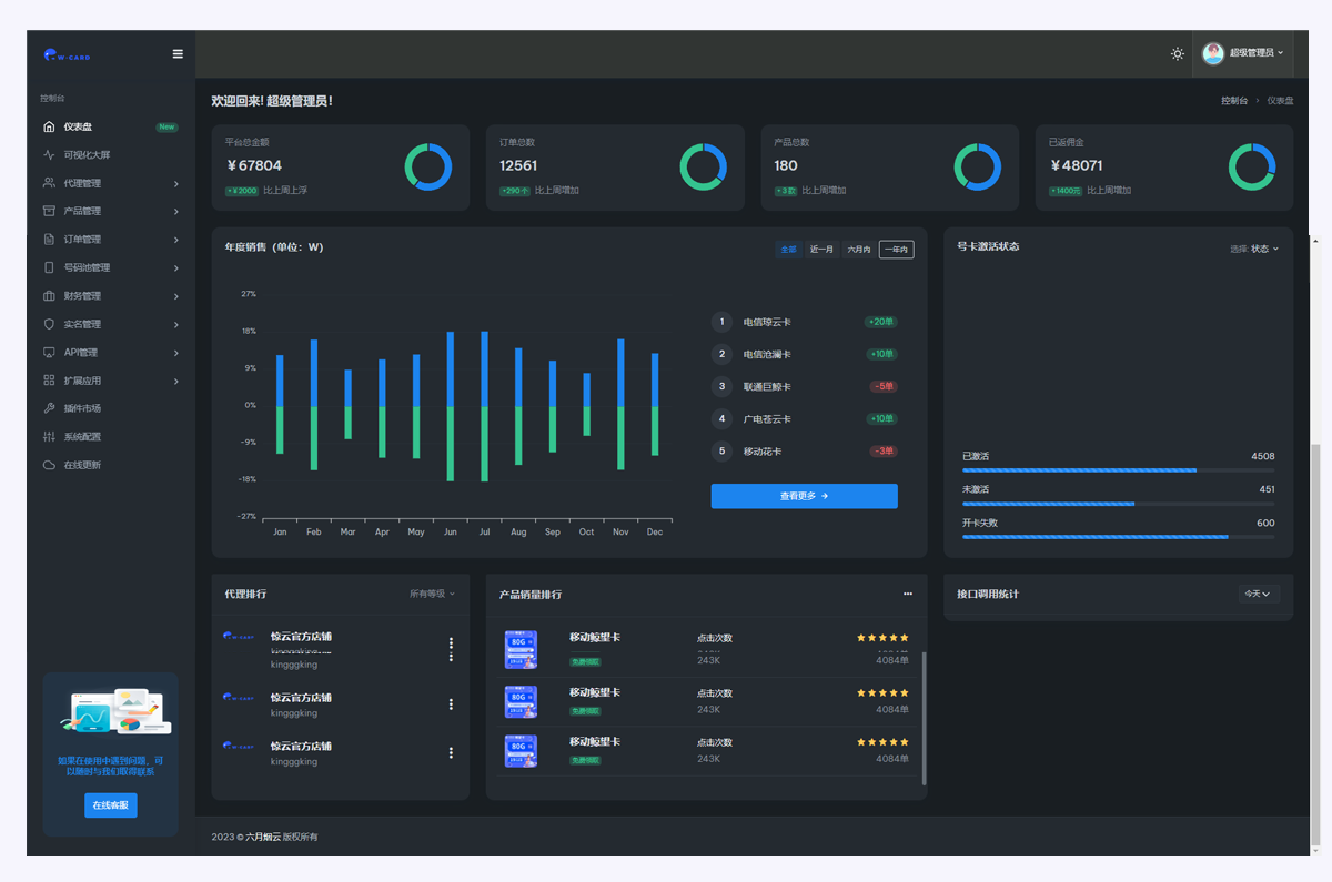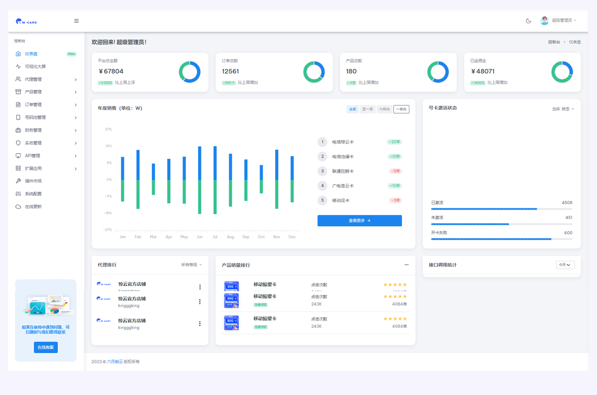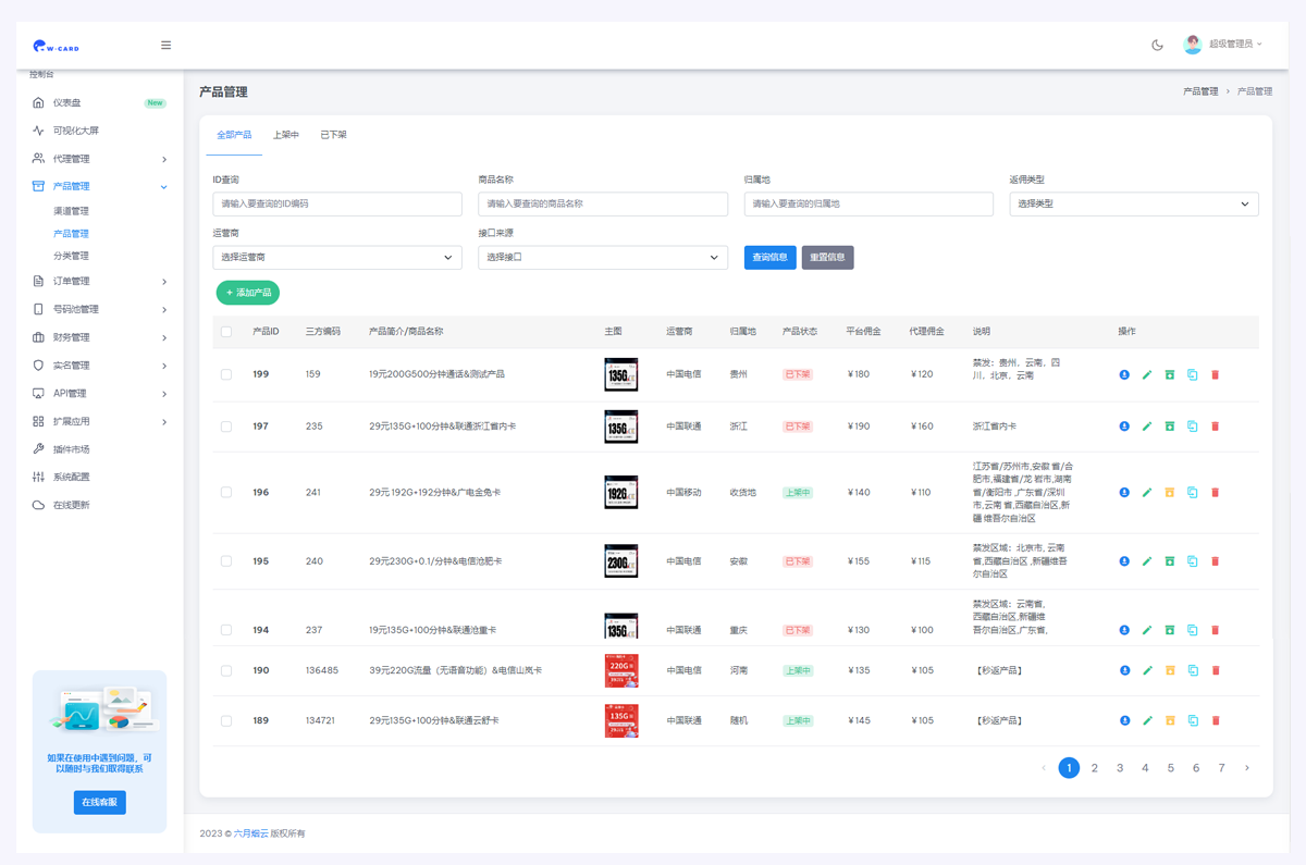 使用卡卡通系统,轻松管理代理商品,对接上下游,对接运营商!